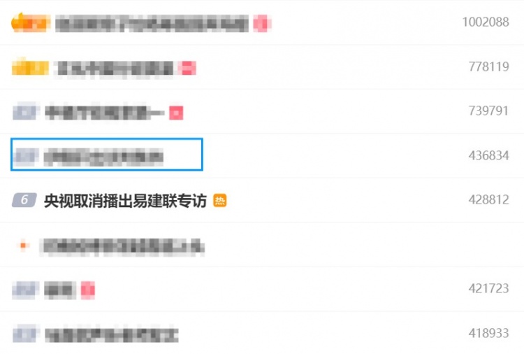 今天中午,“央视取消播出易建联专访”词条登上了热搜第6。